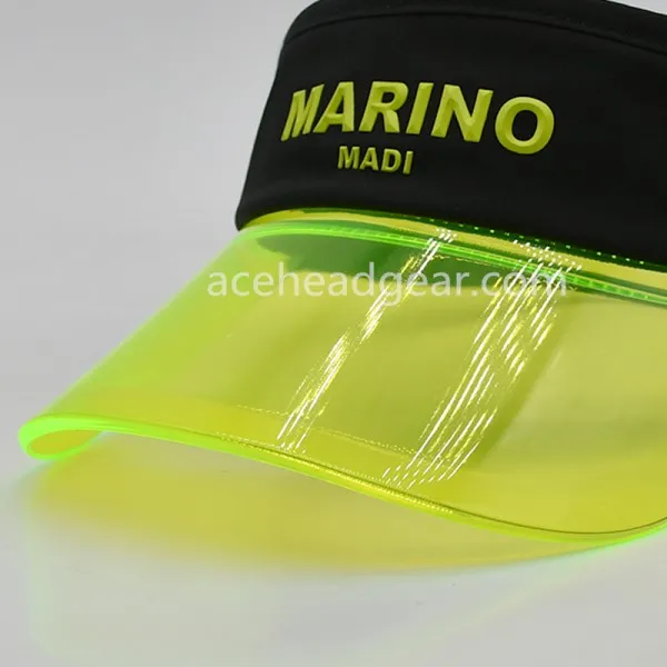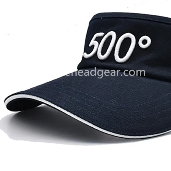 The visor of a cap or hat is a stiff, protruding brim located at the front, designed primarily to shield the eyes from sunlight. It enhances the cap's functionality by providing shade and reducing glare, making it ideal for outdoor activities. The visor also contributes to the cap's overall aesthetic, offering a sporty and casual look. Its design can be customized in terms of shape, size, and material to suit specific preferences and branding needs.